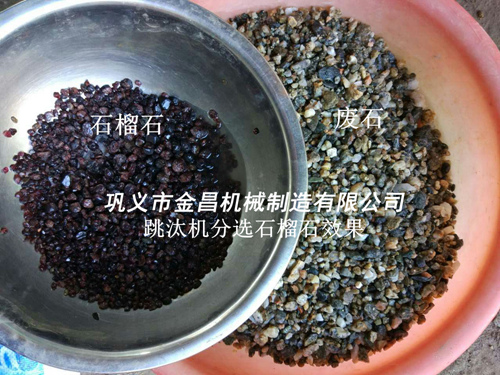 因為石榴石的比重較大,而脈石的比重較小,兩者有很明顯的比重差,跳汰機正是根據物體比重差進行分選的設備,效果是很不錯的。下邊圖片是鞏義市金昌機械用跳汰機分選出的石榴石效果,您可以參考一下。