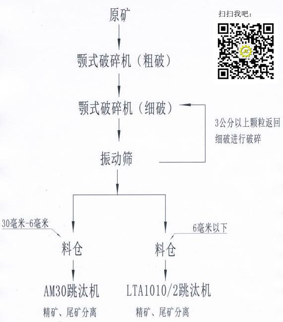 一般情況下,鉻鐵合金的嵌布粒度為30mm以下,當然也有小顆粒存在的形式,整塊冶煉渣基本在250-300mm,因此必須經過兩次破碎,將大塊冶煉渣破碎到30以下,達到廢渣與合金顆粒基本單體解離,再進入鉻渣洗選跳汰機進行洗選,獲得高品質鉻鐵合金顆粒和固體廢渣。