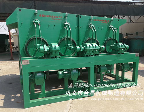 實驗取得了圓滿的成功,那么實際生產用哪種跳汰機設備更為合適呢?這里我們建議客戶使用2LTC6109/8T梯形跳汰機設備,這種跳汰機有8個工作室,兩個為一組,沖程、沖次和用水量是可以單獨調節的,此種跳汰機進料口為1.2米,出料口為2米,水流越走越緩,有利于細顆粒的回收,效果還是非常出色的,當然這種跳汰機價格可能會稍微高一點,其次就是用LTA系列跳汰機,這種跳汰機對此種礦物的回收也是非常有效果的,此種跳汰機價格會便宜一些。選擇哪種型號的跳汰機設備,這要根據您的處理量來決定。