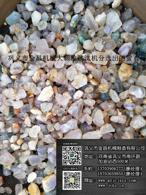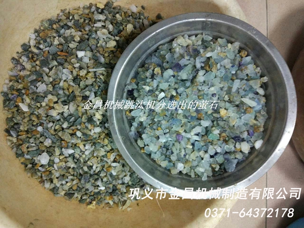 螢石的比重在3.18左右,它與脈石有一定的比重差,所以在實際選礦過程中,螢石可以在跳汰機中用重選的方法選別,并且效果非常良好,下邊金昌機械為您簡要說明一下,螢石在實際生產過程中的工藝是怎么樣的。